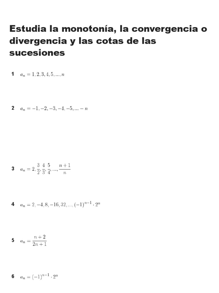 Estudia la monotonía, la convergencia o divergencia y las cotas de las