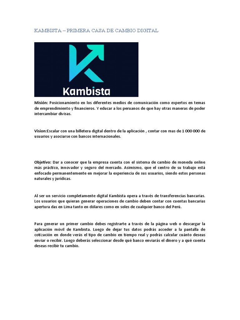 Al ser un servicio completamente digital Kambista opera a través de transferencias bancarias.