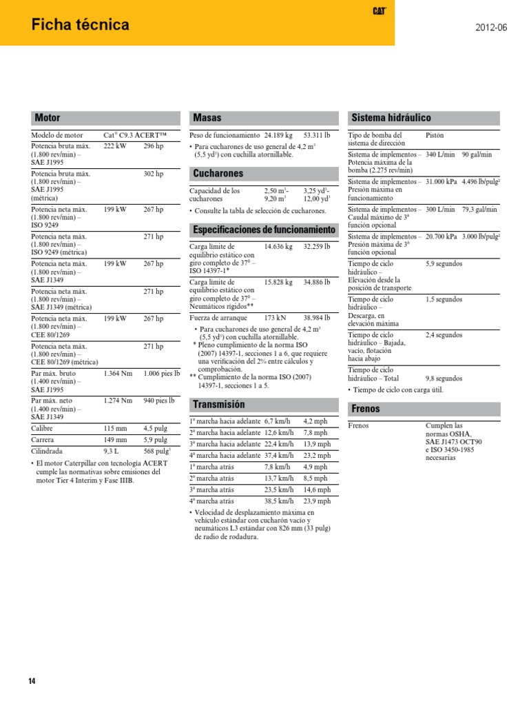 toneladas-km por hora (ton-mph). Caterpillar para una configuración de máquina estándar,