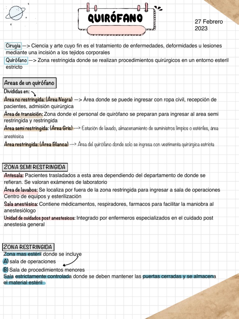Quirófano —> Zona restringida donde se realizan procedimientos quirúrgicos en un entorno esteril