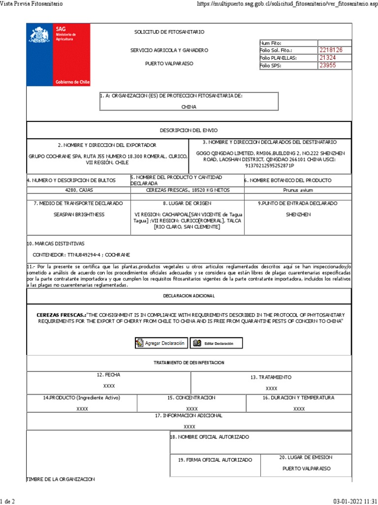 SERVICIO AGRICOLA Y GANADERO Folio Sol. Fito.: 2218126