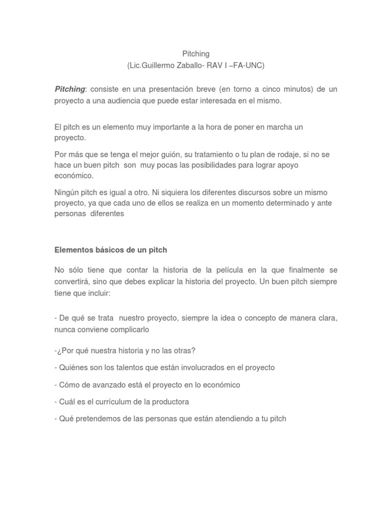 El pitch es un elemento muy importante a la hora de poner en marcha un