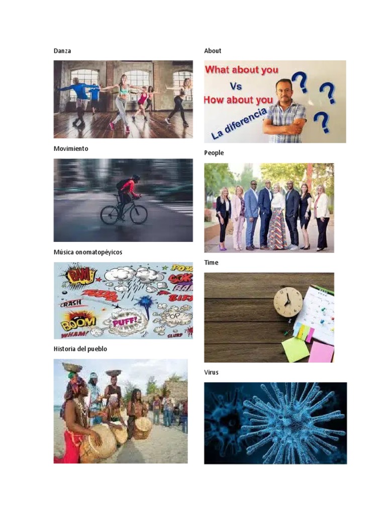 El documento habla sobre diferentes aspectos de la danza incluyendo el movimiento del cuerpo, la música y la historia del pueblo. También menciona el virus y antivirus así como diferentes tipos de dibujos.