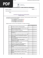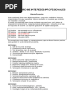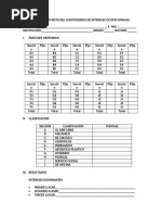 Hoja de respuestas para el inventario de Intereses ocupacionales
