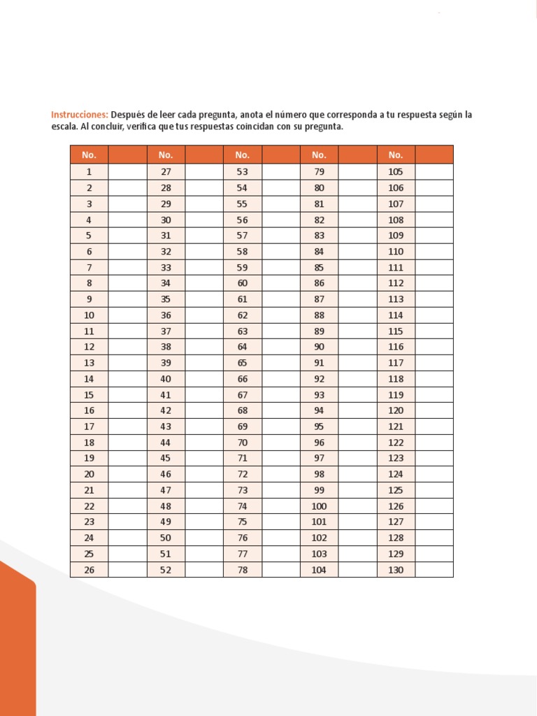 escala. Al concluir, verifica que tus respuestas coincidan con su pregunta.