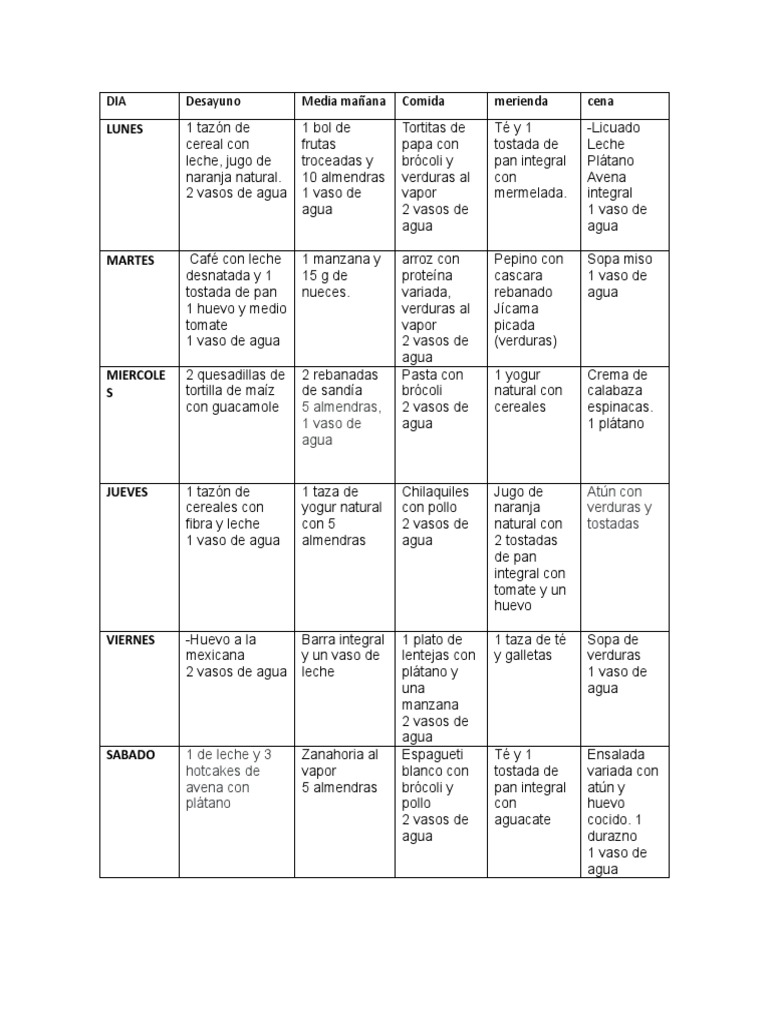 DIA Desayuno Media mañana Comida merienda cena