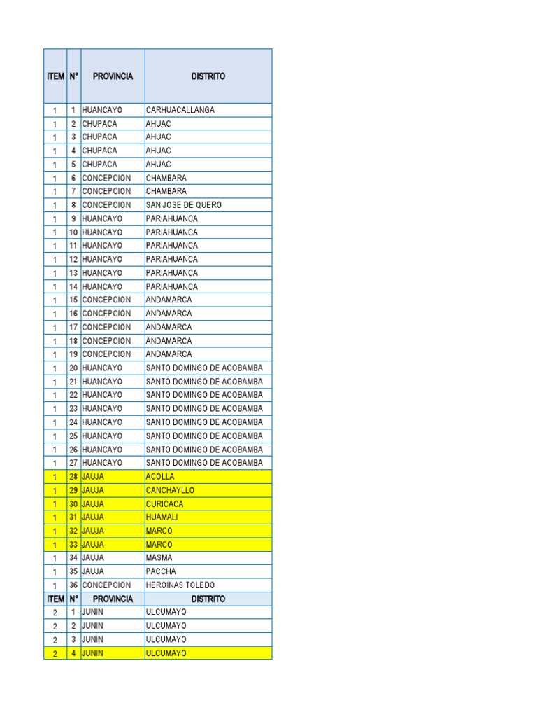 ITEM N° PROVINCIA DISTRITO