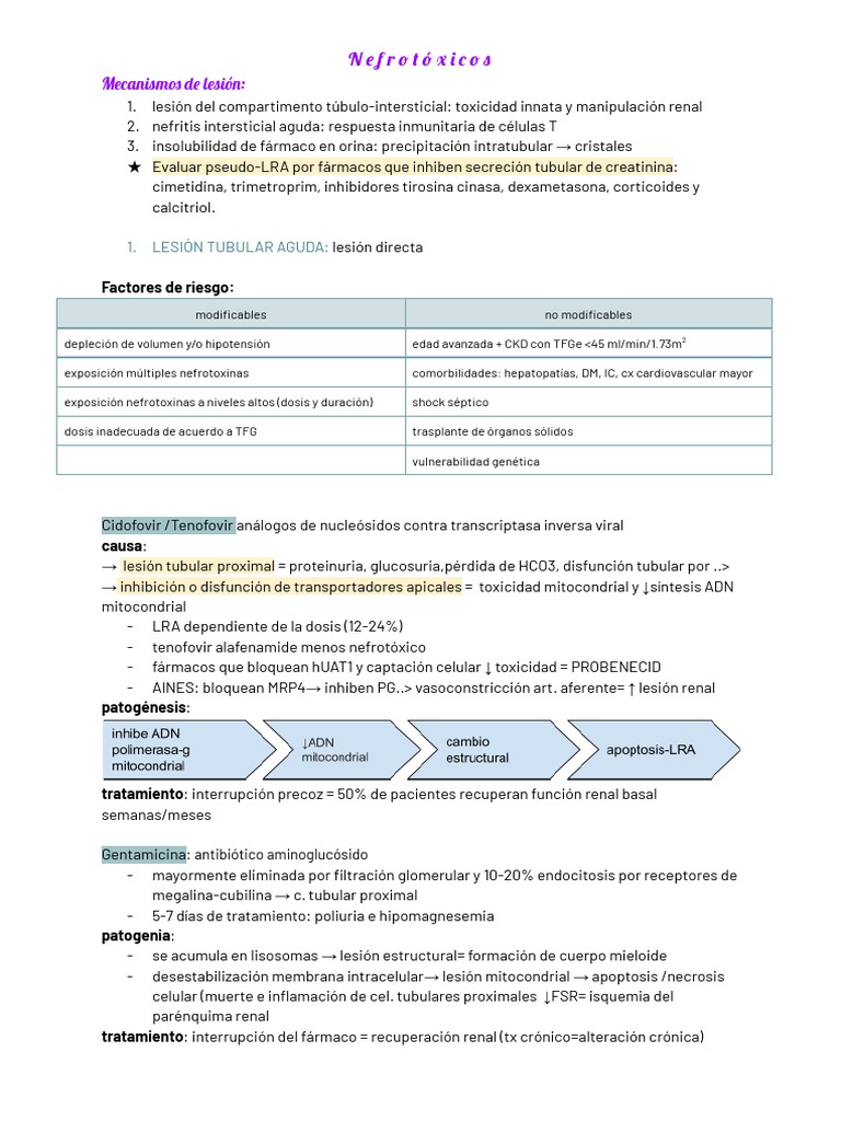 1. lesión del compartimento túbulo-intersticial: toxicidad innata y manipulación renal