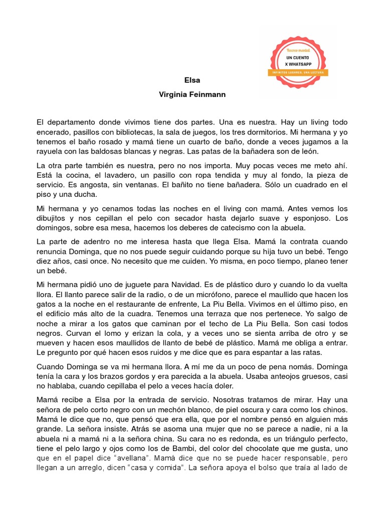 La parte de adentro no me interesa hasta que llega Elsa. Mamá la contrata cuando