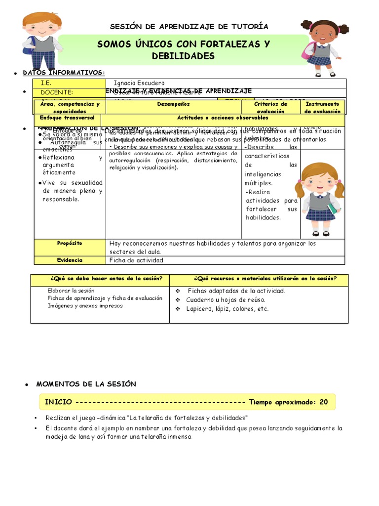 NOMBRE DE LA SESION: “SOMOS ÚNICOS CON FORTALEZAS Y DEBILIDADES”