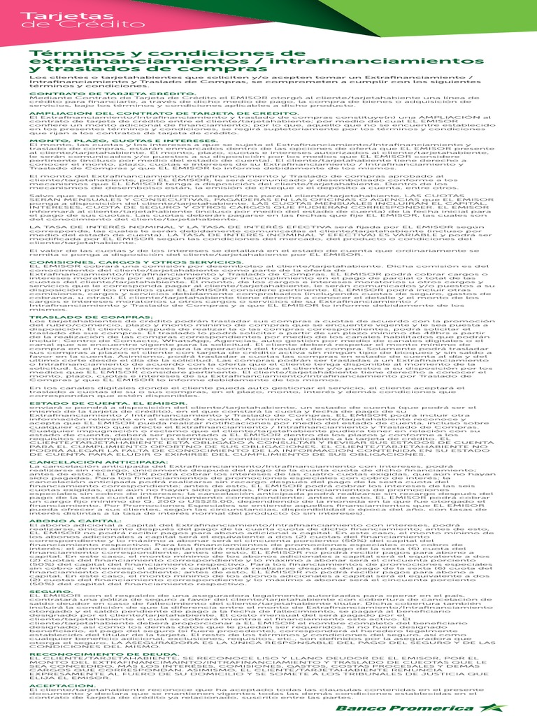 Los clientes o tarjetahabientes que soliciten y/o acepten tomar un Extrafinanciamiento /