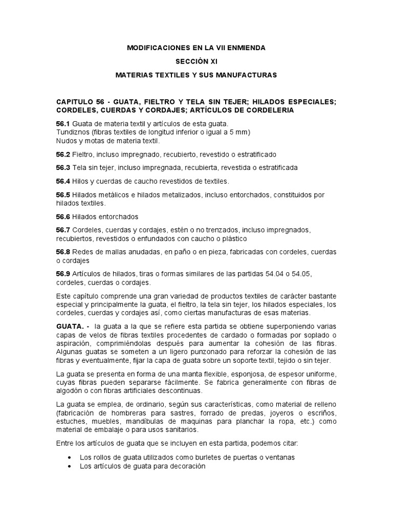 El cambio que se presentó en la VII enmienda corresponde al capítulo 57 partida 57.03