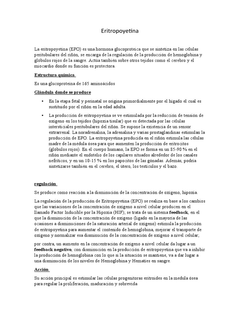 (glóbulos rojos). En el cuerpo humano, la EPO se forma en un 85-90 % en el