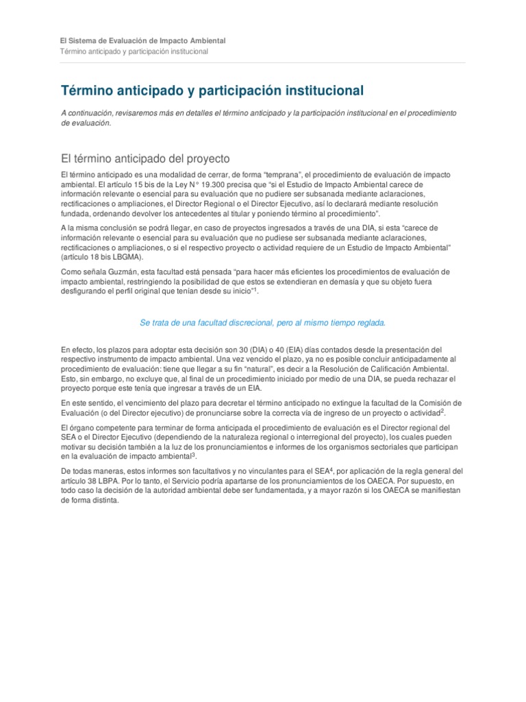 El término anticipado es una modalidad de cerrar, de forma “temprana”, el procedimiento de evaluación de impacto