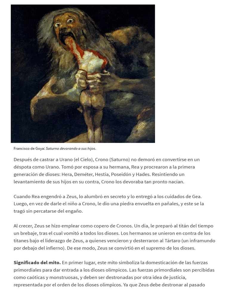 Después de castrar a Urano (el Cielo), Crono (Saturno) no demoró en convertirse en un