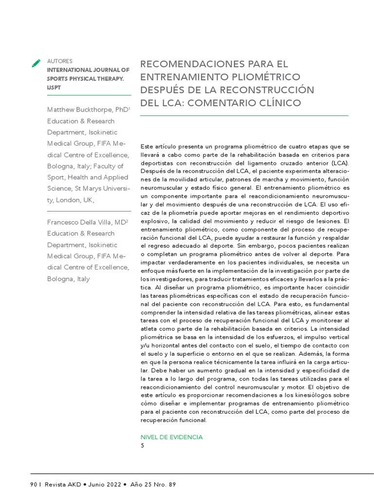 Medical Group, FIFA Me- o completan un programa pliométrico antes de volver al deporte. Para