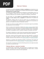 valores son aquellos principios, virtudes o cualidades que caracterizan a una