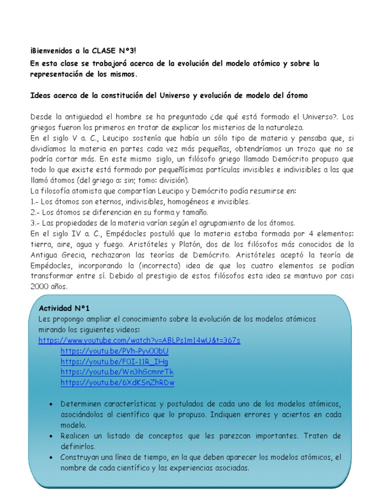En esta clase se trabajará acerca de la evolución del modelo atómico y sobre la