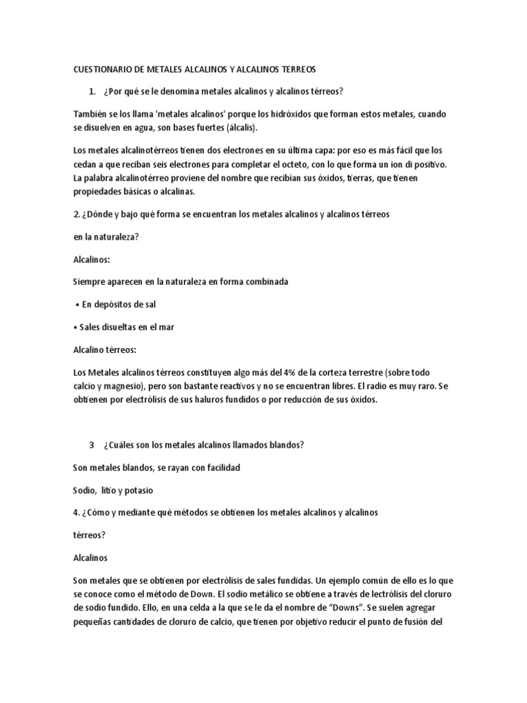 CUESTIONARIO DE METALES ALCALINOS Y ALCALINOS TERREOS
