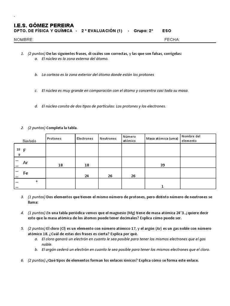 DPTO. DE FÍSICA Y QUÍMICA - 2 ª EVALUACIÓN (1) - Grupo: 2º ESO