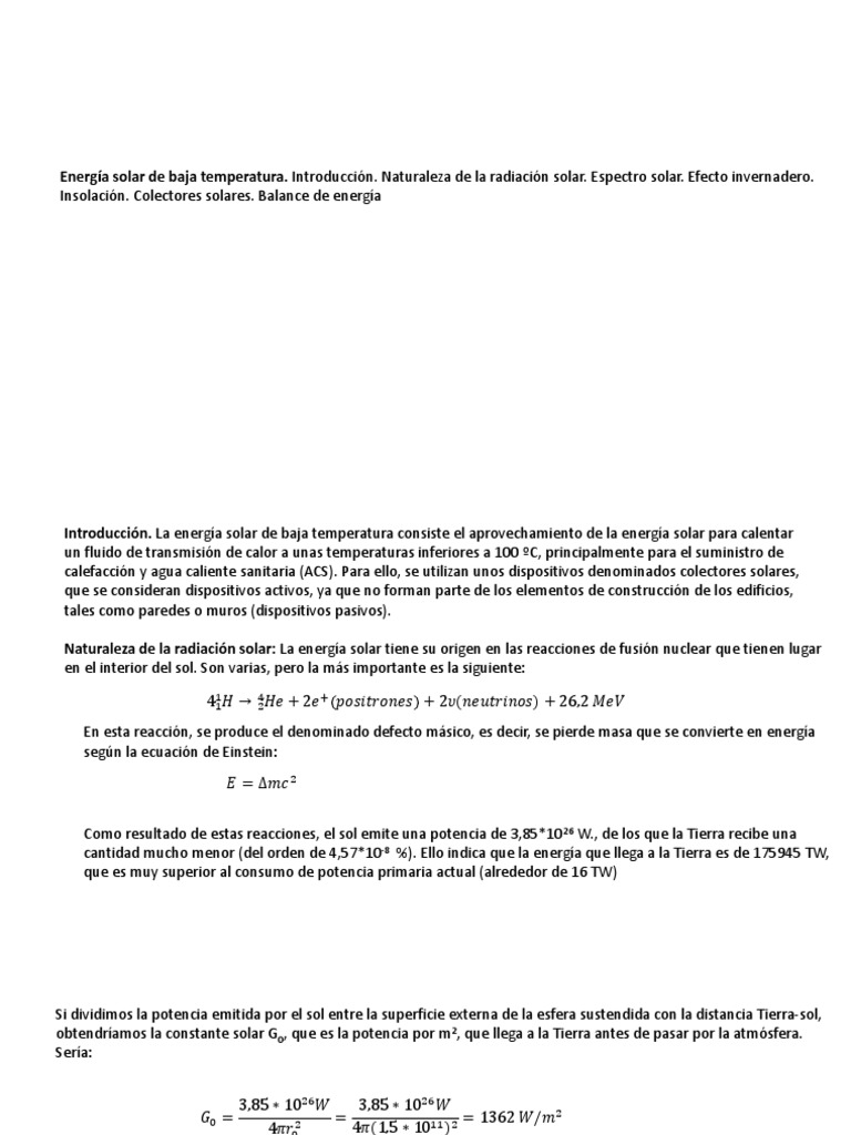 Energía solar de baja temperatura. Introducción. Naturaleza de la radiación solar. Espectro solar. Efecto invernadero.