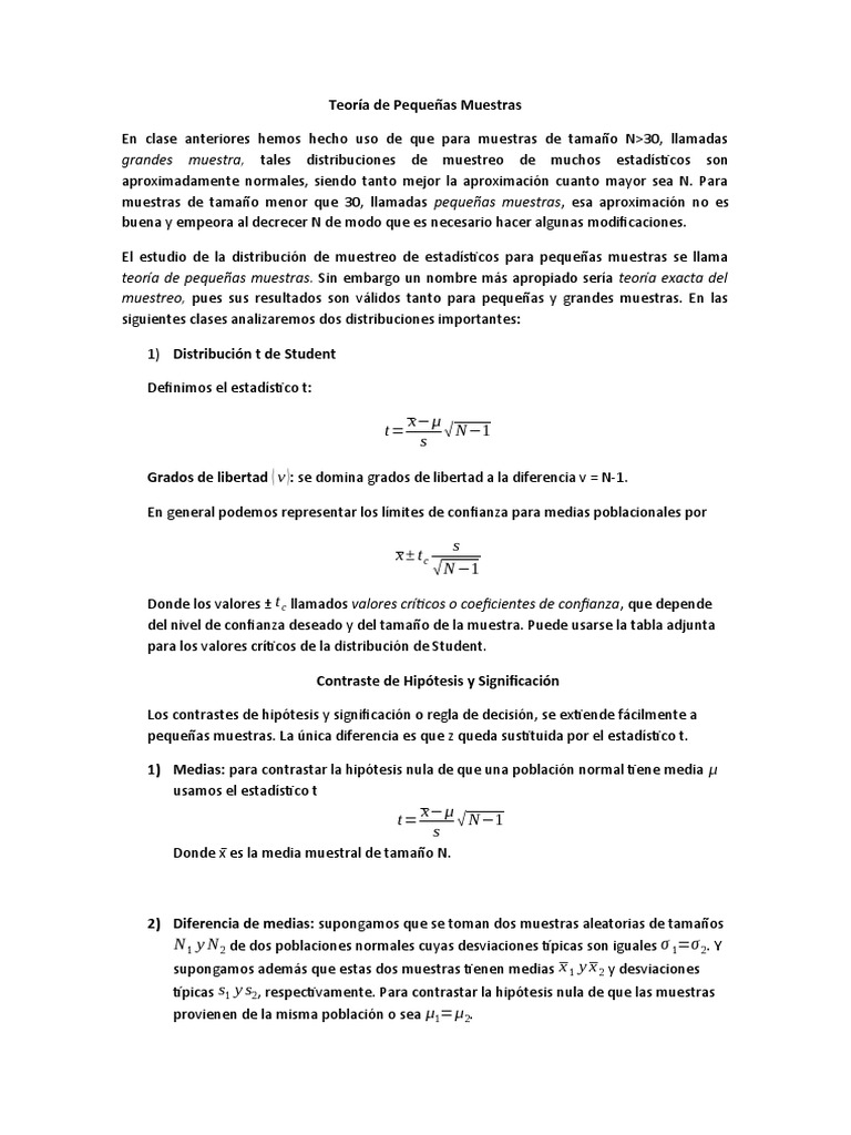 Teoría de Pequeñas Muestras