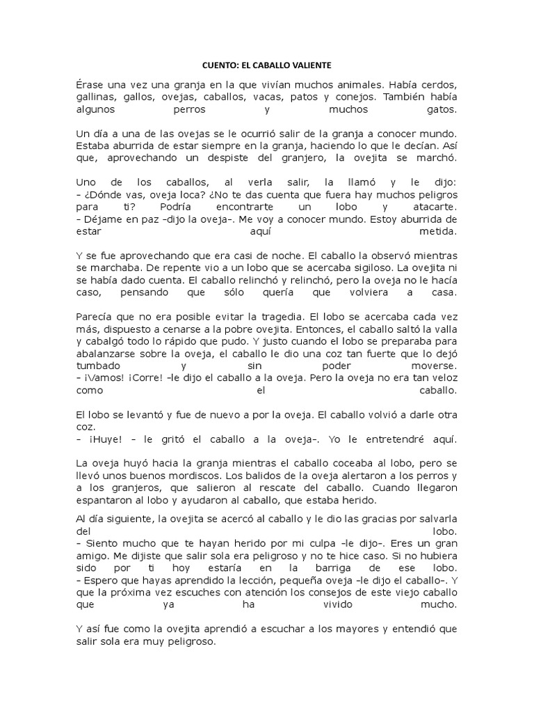 - ¡Vamos! ¡Corre! -le dijo el caballo a la oveja. Pero la oveja no era tan veloz