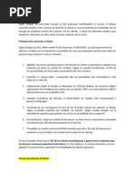 cliente en cuanto al producto y servicio.