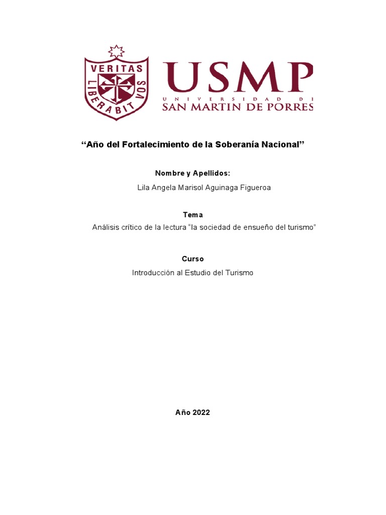 Análisis crítico de la lectura “la sociedad de ensueño del turismo”