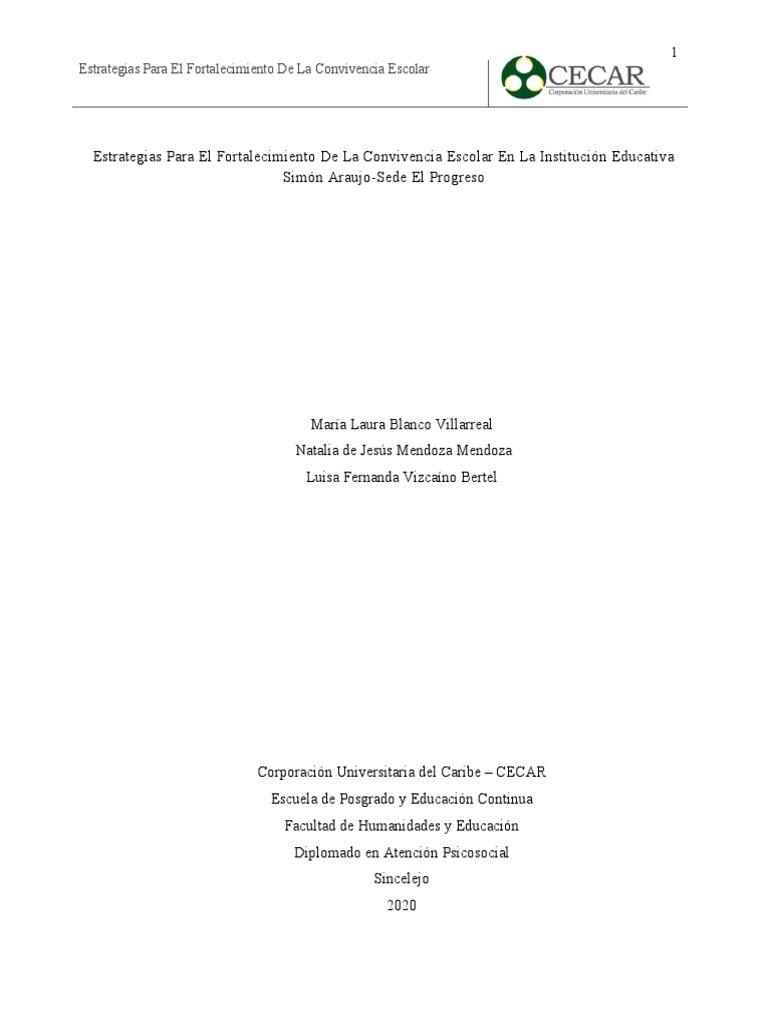Estrategias Para El Fortalecimiento De La Convivencia Escolar En La Institución Educativa