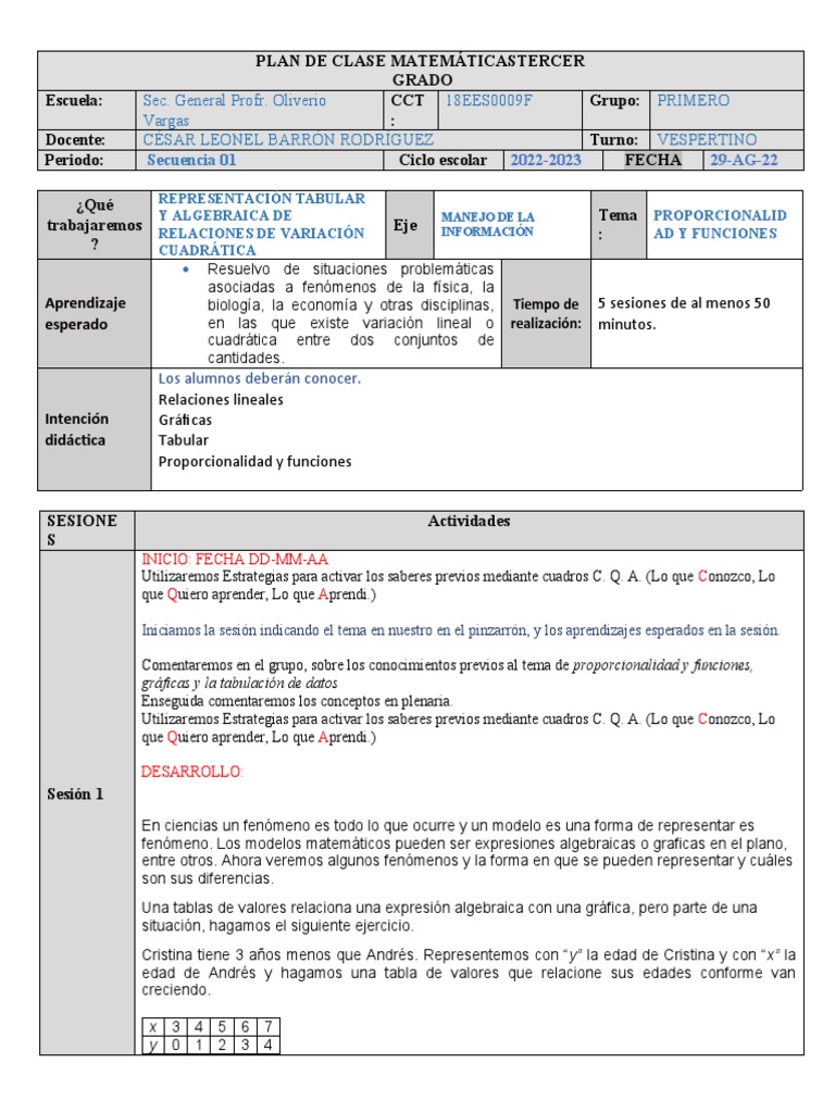 Periodo: Secuencia 01 Ciclo escolar 2022-2023 FECHA 29-AG-22