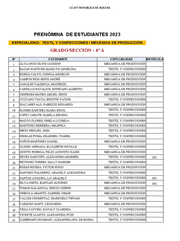 PRENÓMINA DE ESTUDIANTES 2023