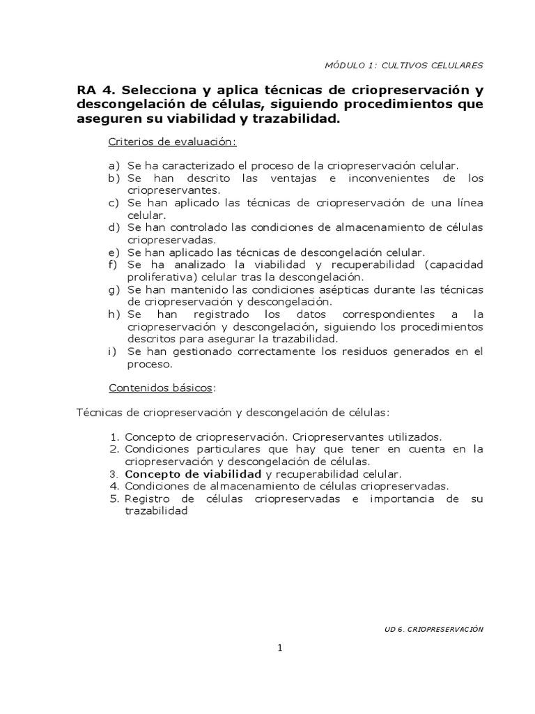 RA 4. Selecciona y aplica técnicas de criopreservación y