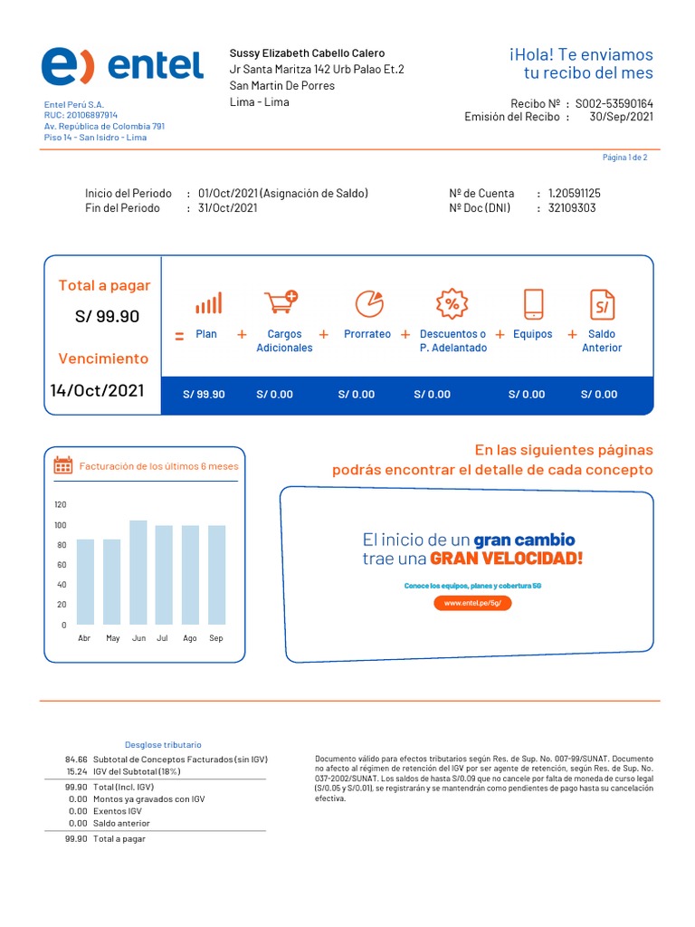 Entel Perú S.A. Lima - Lima Recibo Nº : S002-53590164