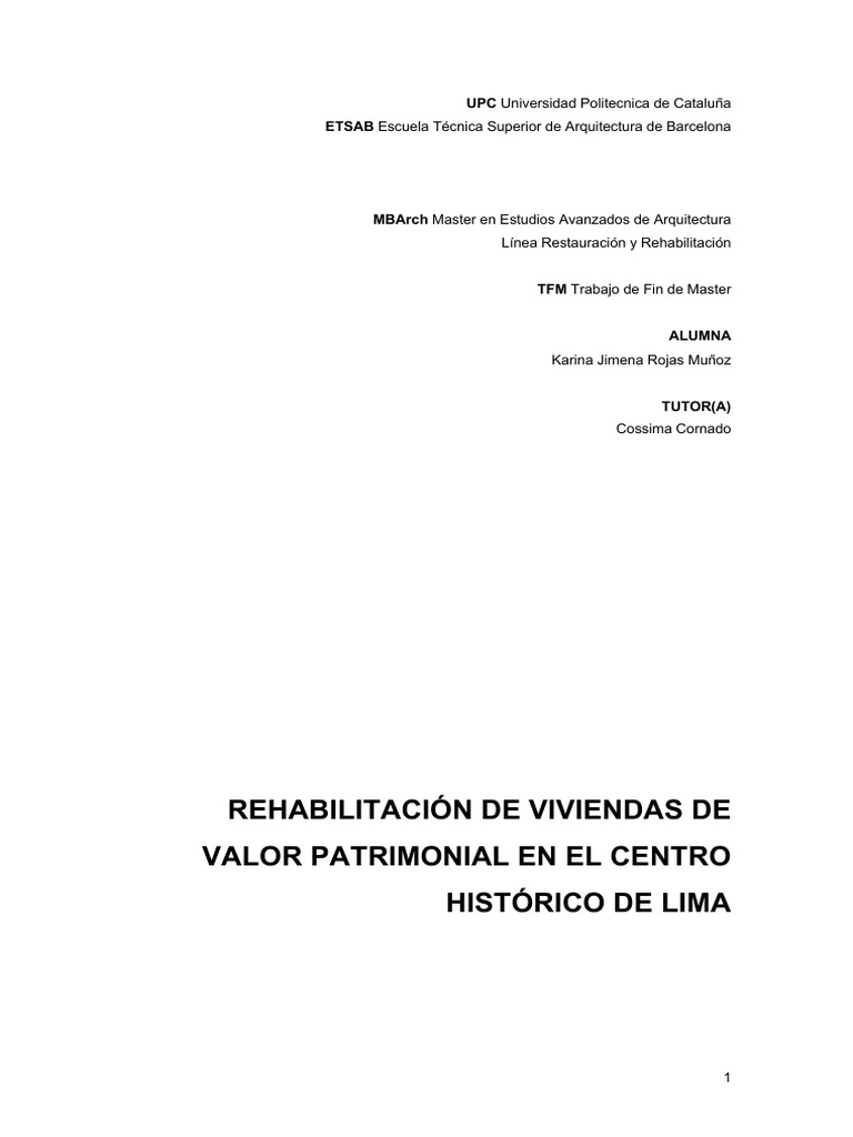 Histórico de Lima) surgió el interés de profundizar en el tema de los inmuebles residenciales