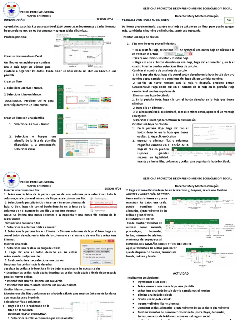 INTRODUCCIÓN SESION N°04 TRABAJAR CON HOJAS EN UN LIBRO 3ro