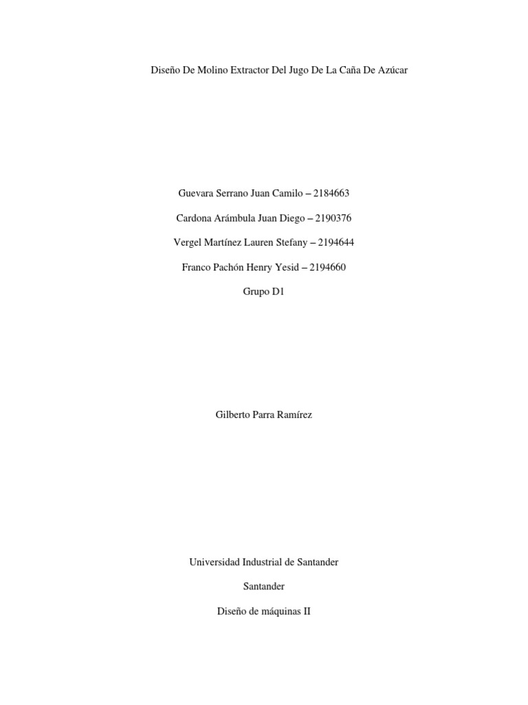 Diseño De Molino Extractor Del Jugo De La Caña De Azúcar