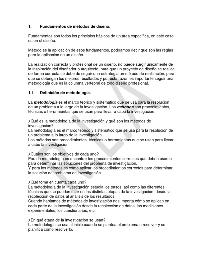 proceso de diseño y se fundamenta el empleo de métodos. Tiene características