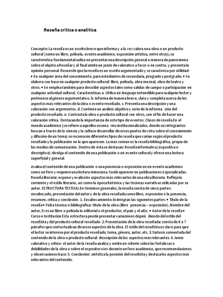 Reseña crítica o analítica