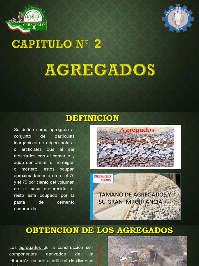 responsables de gran parte de las características del mismo. Los agregados son generalmente