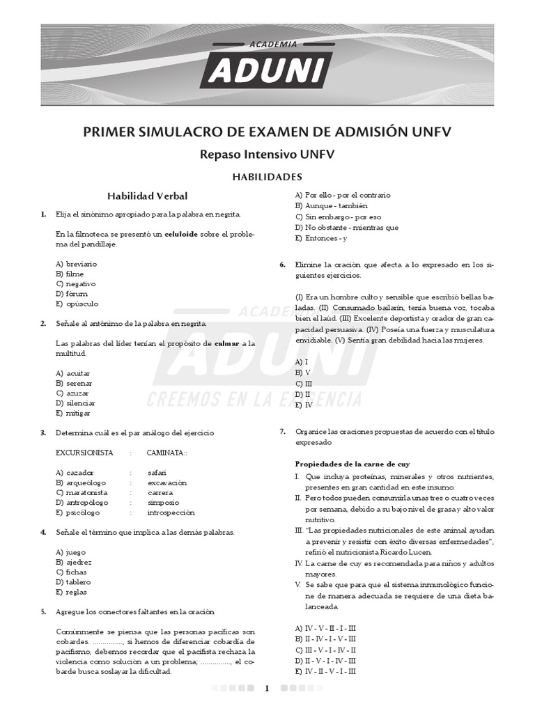 Repaso Intensivo UNFV Primer Simulacro de Examen de Admisión UNFV