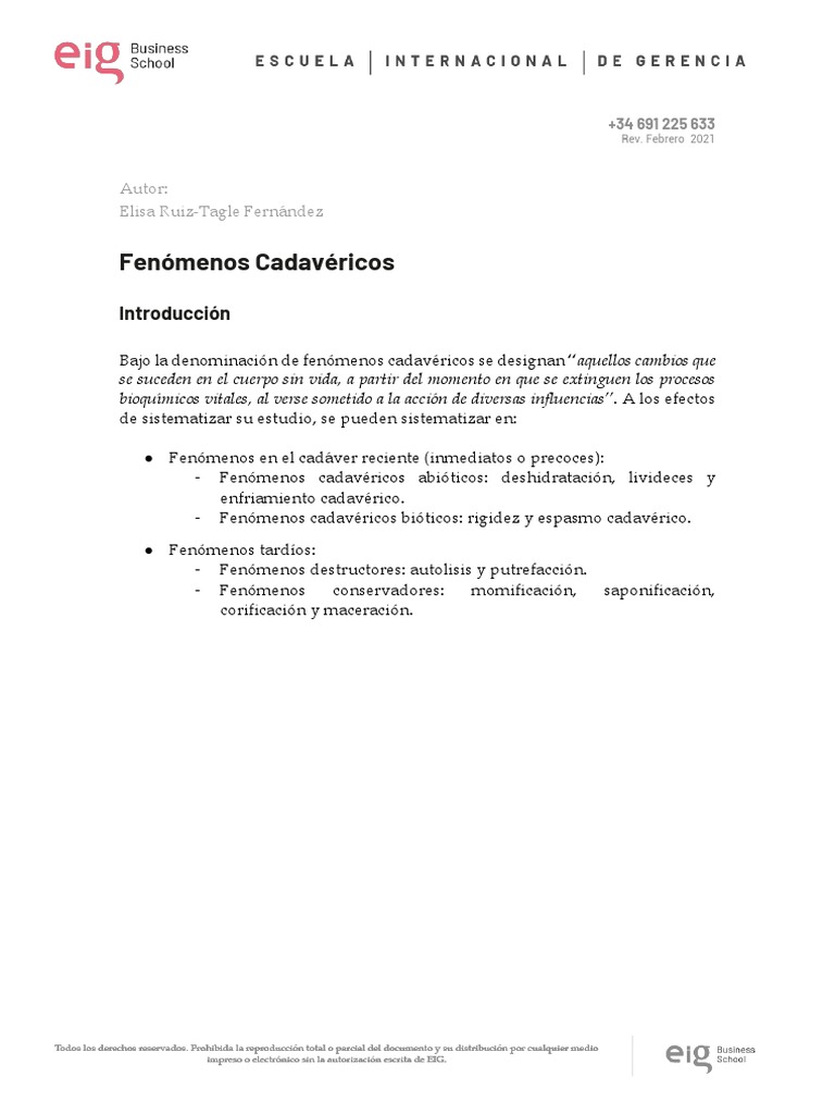 El interés de los fenómenos cadavéricos en la investigación tanatológica es
