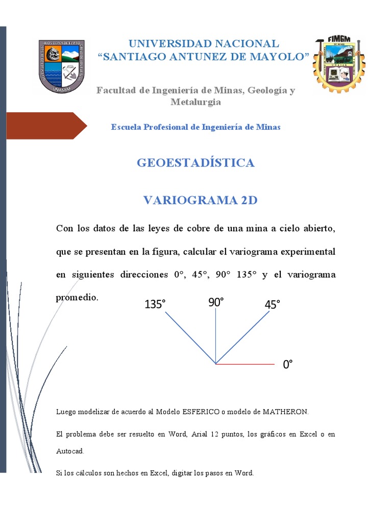 en siguientes direcciones 0°, 45°, 90° 135° y el variograma