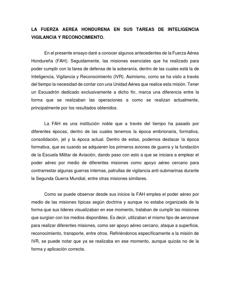 LA FUERZA AEREA HONDURENA EN SUS TAREAS DE INTELIGENCIA