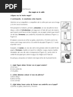 Has notado como te tata la gente cuando es amable y cmo te trata cuando eres grosero? Qu te gusta ms? Da un buen ejemplo personal cuando tuviste que sufrir las consecuencias negativas de un error que cometiste. Escribe un cuento que se llame, todos los actos tienen una consecuencia. Cundo se han rechazado has tenido el deseo de vengarte? Cmo describes ese sentimiento? Crees que es positivo o negativo? Conoces hermanos que, al morir sus padres, se pelearon por causa de la herencia? Qu piensas de eso? Cmo aplicas en tu vida la historia de los dos hermanos que se tratan de ayudar en secreto? Alguna vez has protestado por el lugar que te toco en la familia? (mayor, menor, medio) Describe tus hermanos. Redacta una carta a cada uno de tus hermanos en la que les digas cuanto los amas. Alguna vez has pensado irte de la casa? Como crees que se sentirn tus padres si lo haces? Has pensado en las virtudes y caractersticas positivas de tus padres? Te has dado cuenta de que son ms grandes y numerosas que sus defectos? Eres una persona que ser preocupa demasiado? Por qu? La gente se re y se siente relejada esta a tu lado? Irradias alegra o amargura? Por qu? Imagina una pelcula del futuro. Tu estas ah, eres el protagonista Cmo vistes? Cmo es tu casa, tu coche, tu pareja, tu familia? Eres profesional? De qu carrera? Tienes dinero? Cuanto? Eres famoso? Por qu motivo? Has sido vctima de personas que te dicen mentiras o tratan de convencerte de lo que les conviene?