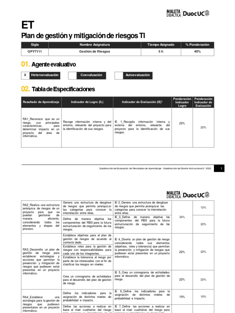 clasificación de cada riesgo, indicando un responsable responsable cada riesgo, indicando un 10%