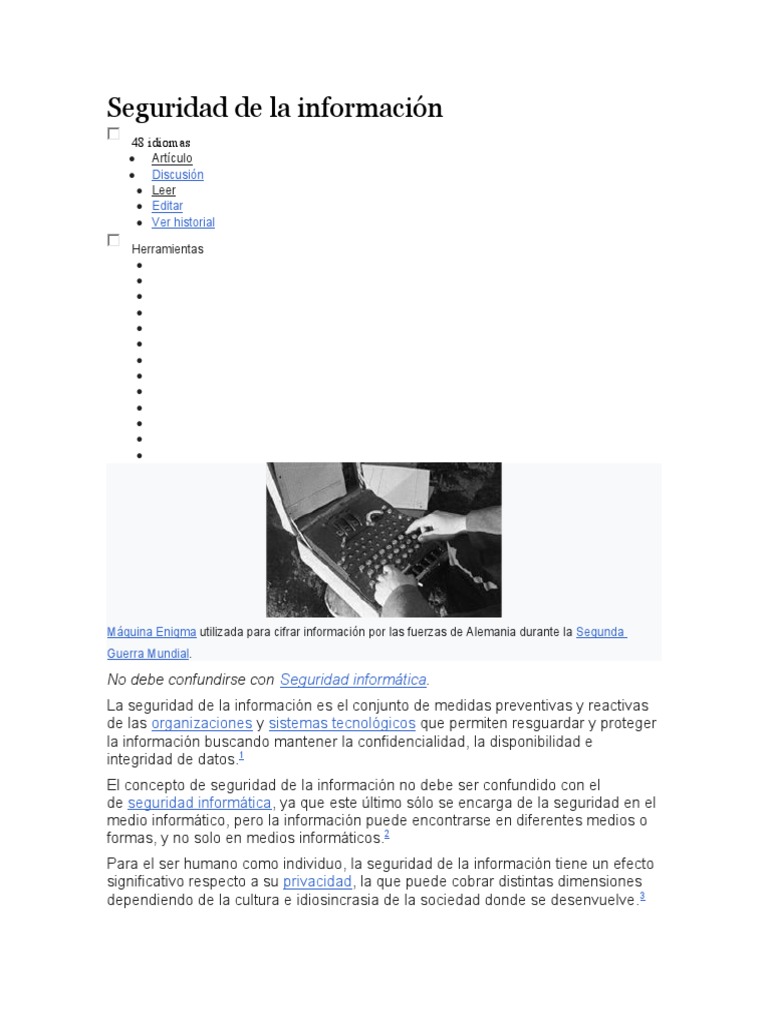 La seguridad de la información es el conjunto de medidas preventivas y reactivas