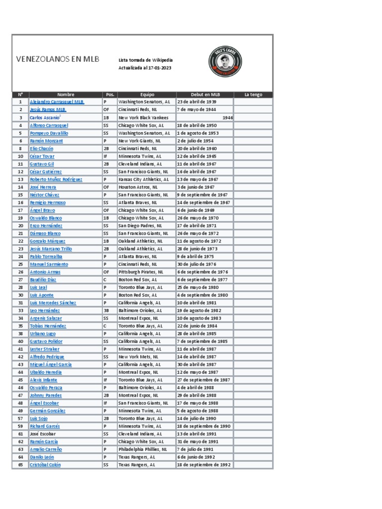 VENEZOLANOS EN MLB Lista tomada de Wikipedia