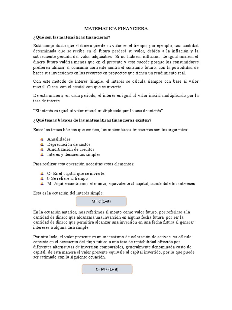 Entre los temas básicos que existen, las matemáticas financieras son los siguientes: