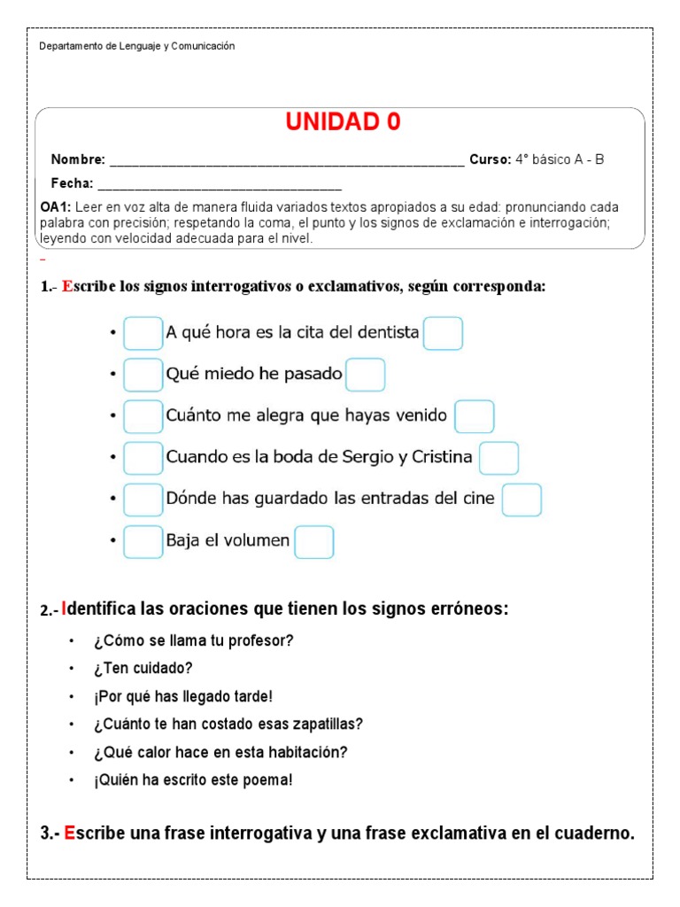 1.- Escribe los signos interrogativos o exclamativos, según corresponda: